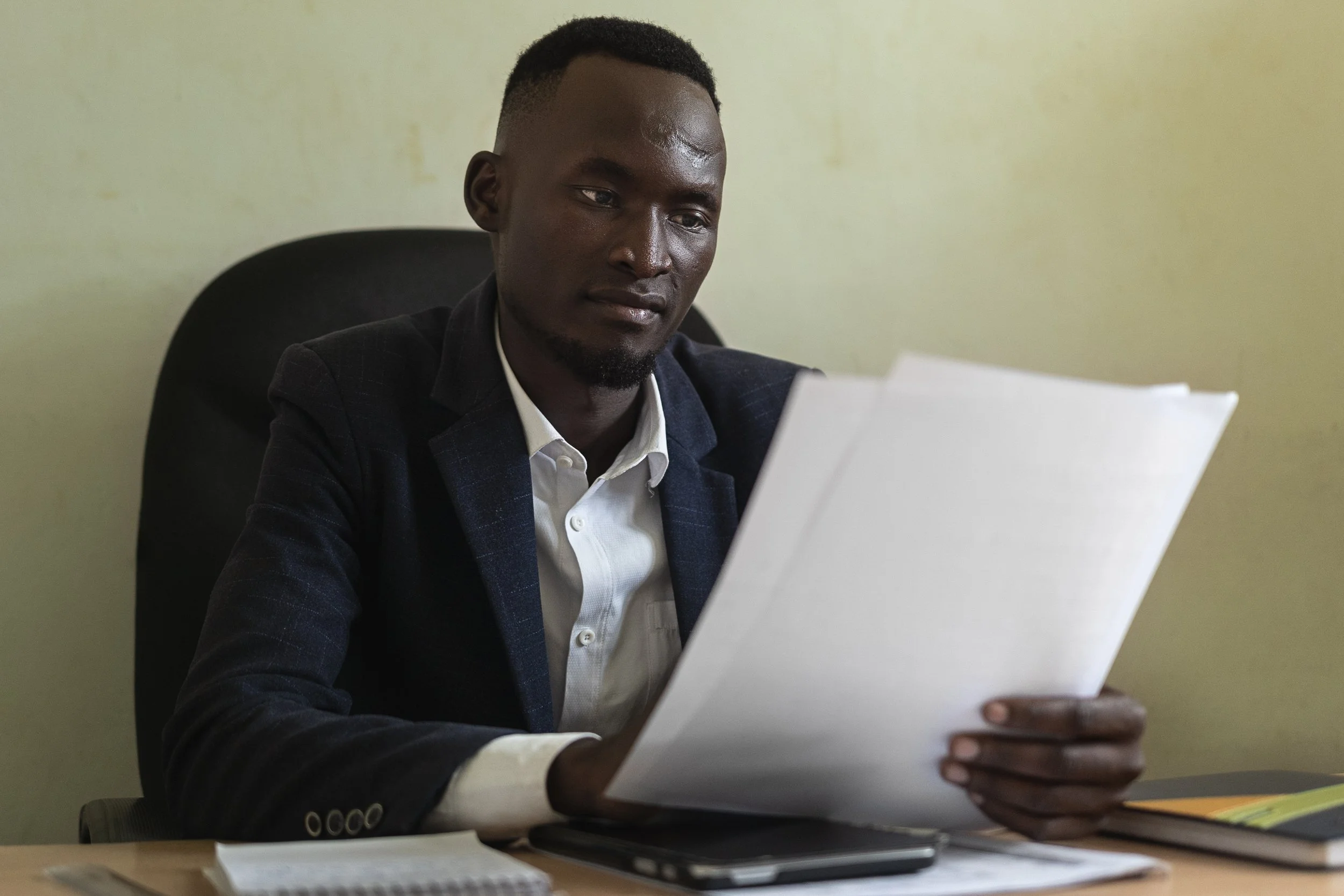Portrait of Oryem Bosco, my fixer and RN/Physician’s Assistant at NUMEM clinic in between seeing patients.